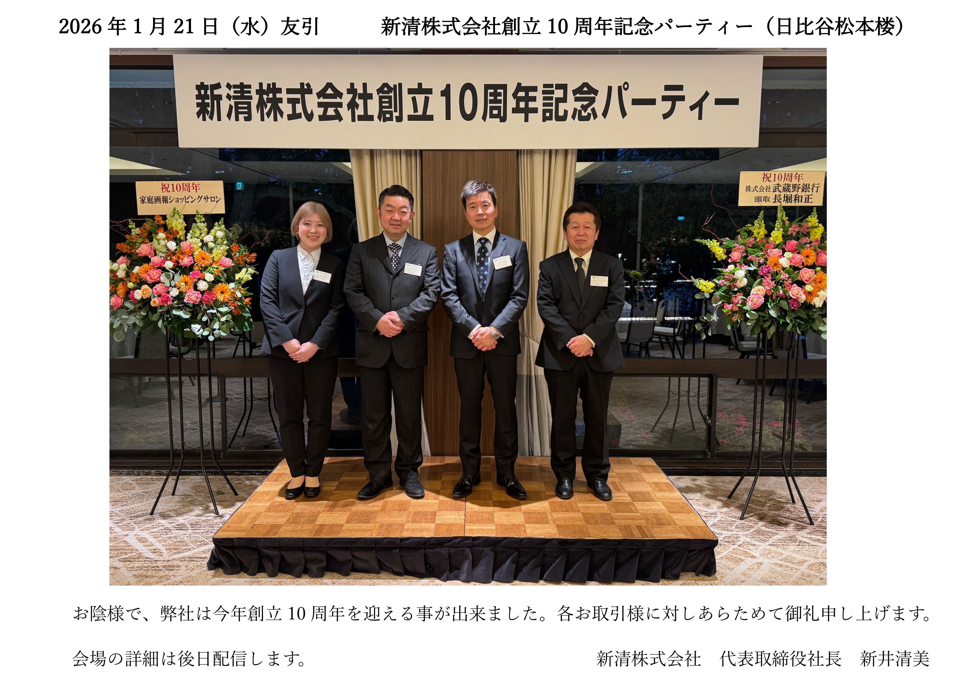 - 新清株式会社創立10周年記念パーティー(於:日比谷松本楼)