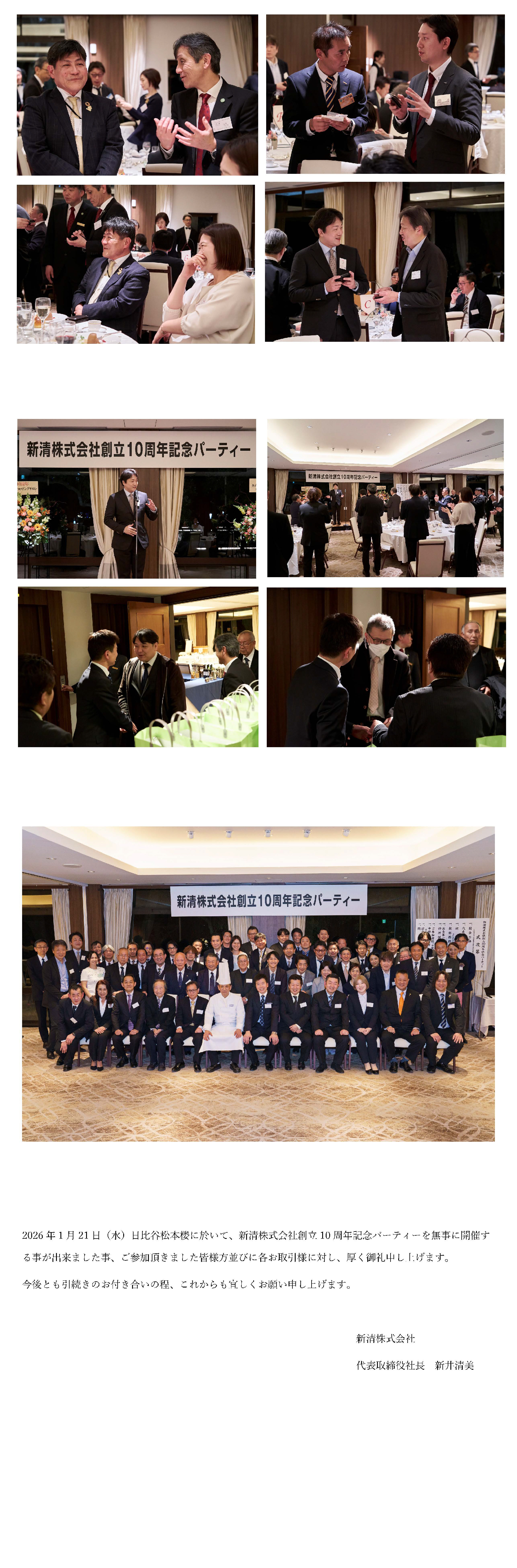 - 新清株式会社創立10周年記念パーティー(於:日比谷松本楼)